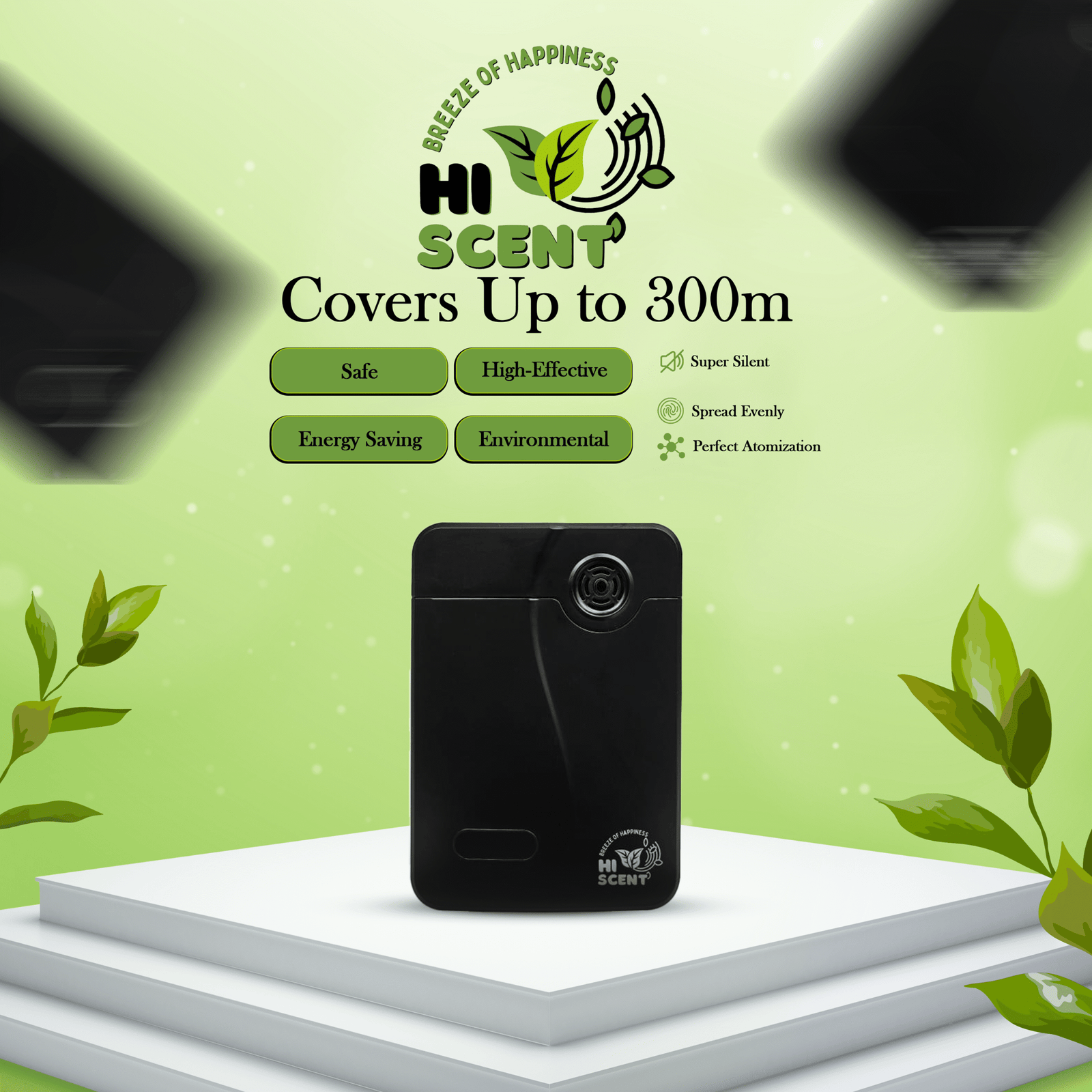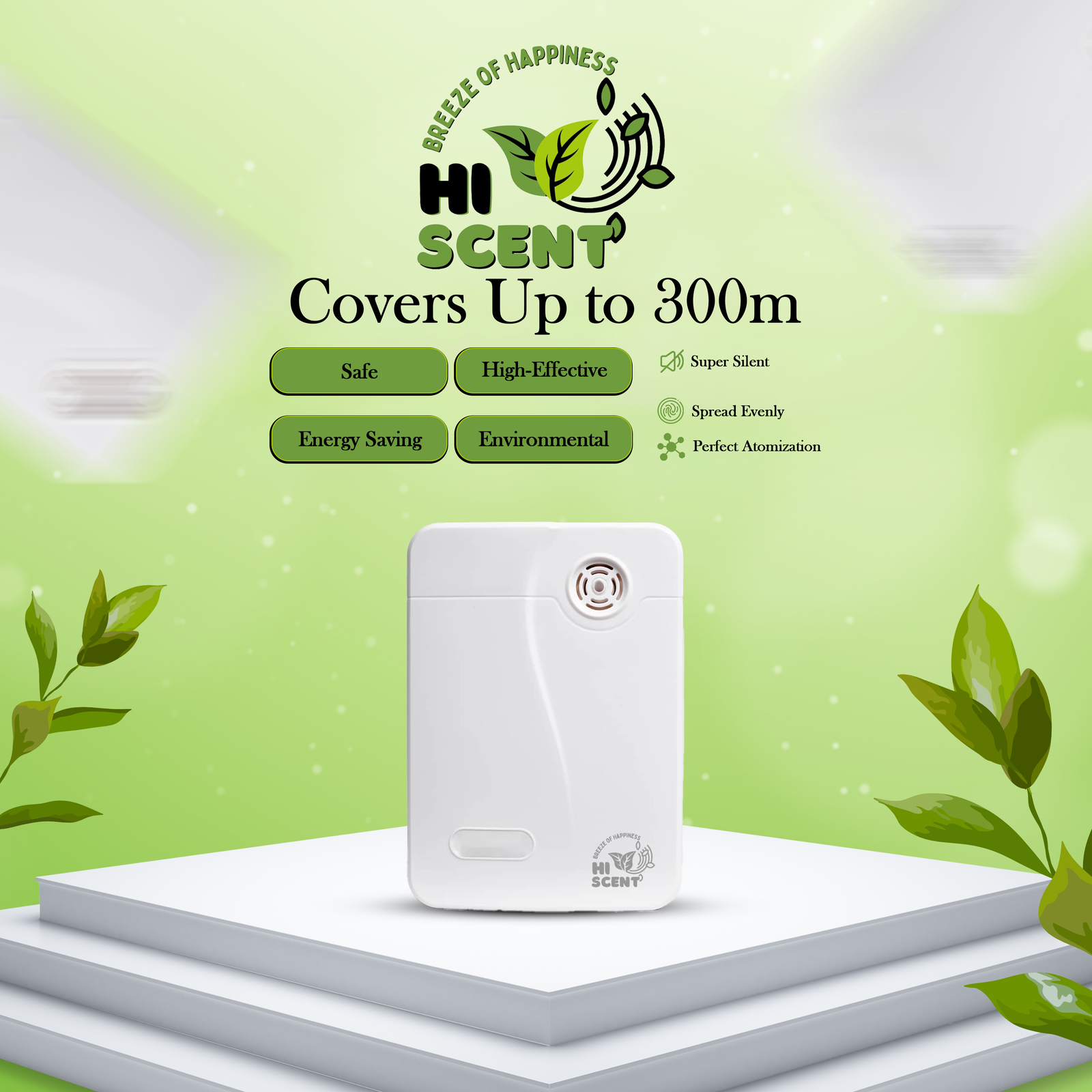 The Room Diffuser is designed for homes, studios, salons, or cozy office areas — any place that needs a personal, pleasant scent touch. Covering up to 300 m², this compact powerhouse fills your space with elegant aroma using cold-air diffusion to preserve the purity and quality of fragrance oils.